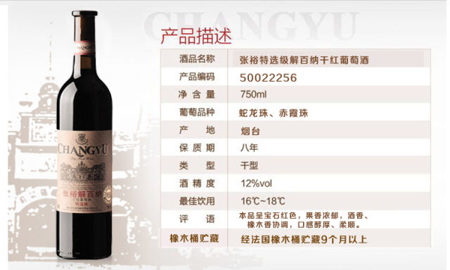 张裕解百纳干红葡萄酒